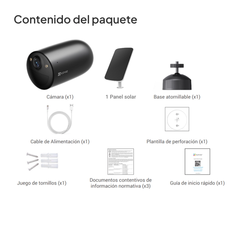 Funciona con paneles solares EZVIZ (versiones Type-C) para obtener energía verde.