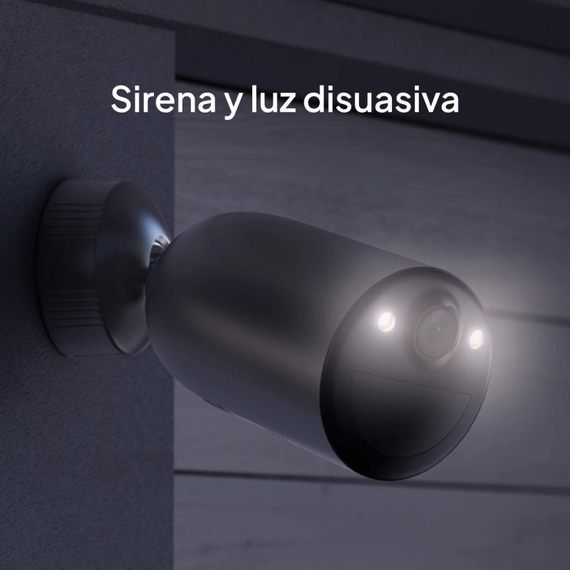Al detectar intrusos, la cámara activará una sirena fuerte y encenderá cuatro focos deslumbrantes para que los extraños invitados sepan que han sido detectados.
